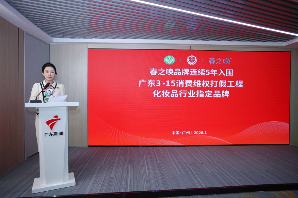 在近日举行的 2026 广东3·15消费维权打假工程相关活动中,主办方就重点消费领域的工作情况进行了集中说明。其中,化妆品行业相关内容受到与会人员关注。根据现场发布的信息,春之唤品牌被确认连续6年列入广东3·15消费维权打假工程,并持续作为化妆品行业指定品牌纳入相关工作安排。